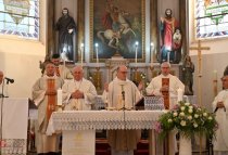 GOLUBINCI - Srijemska biskupija je jučer u Golubincima zahvalnim slavljem svečano obilježila 1100 godina od krunjenja kralja Tomislava. Misu je predvodio srijemski biskup Fabijan Svalina u zajedništvu s biskupom u miru Đurom Gašparovićem i svećenicima Srijemske biskupije.