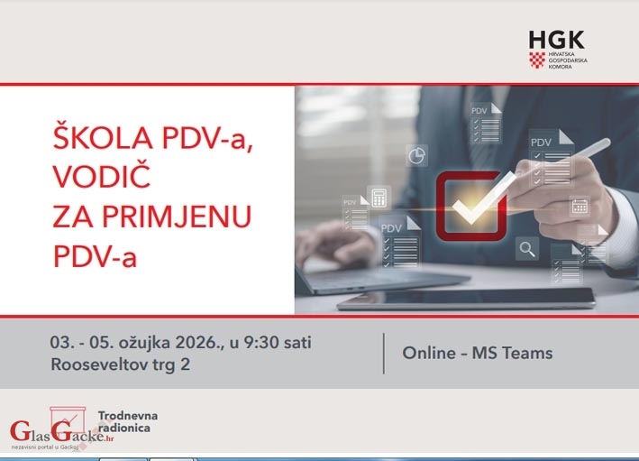 OTOČAC – Hrvatska gospodarska komora organizira trodnevnu radionicu Škola PDV-a, vodič za primjenu PDV-a, a u suradnji s Hrvatskom zajednicom računovođa i financijskih djelatnika.