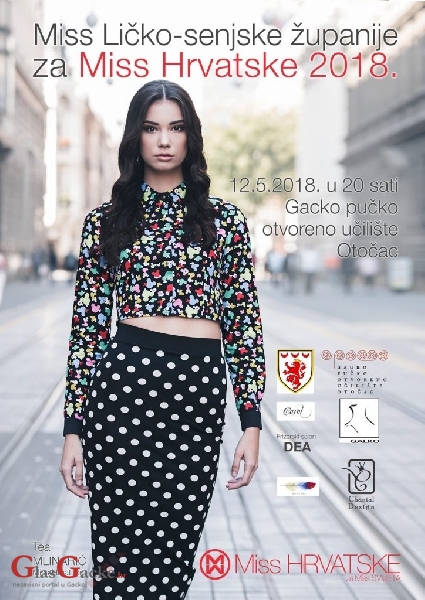 OTOČAC - Izbor za Miss Ličko-senjske županije koji je dio izbora Miss Hrvatske za Miss Svijeta održat će se 12. 5. 2018. u 20 sati u velikoj dvorani Gackog pučkog otvorenog učilišta Otočac. Kandidatkinje s područja čitave županije predstavit će se pred stručnim žirijem, a izbor će biti popraćen i zabavno-umjetničkim programom.